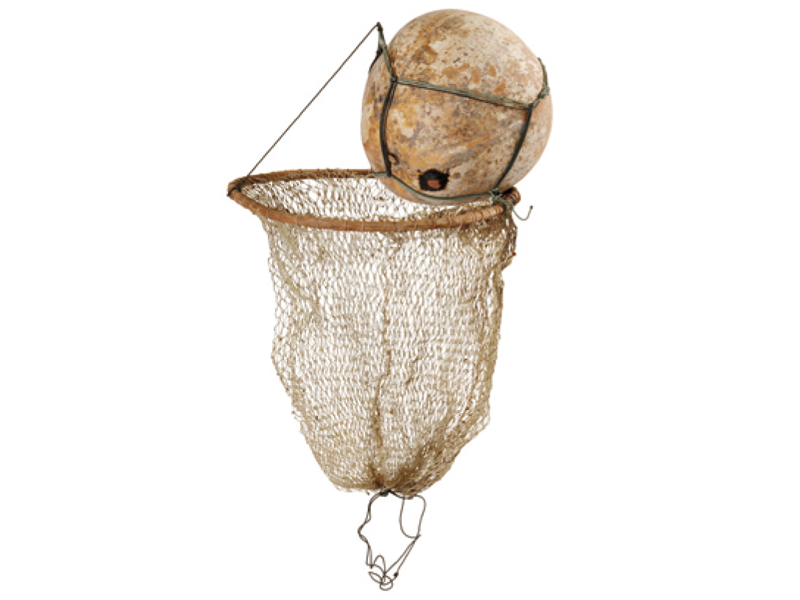테왁, 망사리(??匏, 囊網 / Net pocket) / 박+나무+합성수지 / 근대 / 길이 25.0(좌) 테왁은 해녀들이 물질할 때, 그 부력(浮力)을 이용하여 가슴을 얹고 헤엄을 치는데 쓰이는 어구이며, 망사리는 테왁 밑에 어획물을 넣어두는 그물주머니를 말한다.